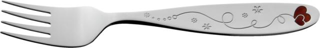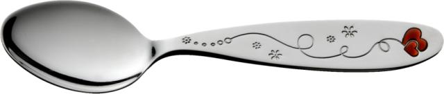 Håndemaljert barnebestikk i moderne design. Et søtt barnebestikk med hjerter til de minste. Et kjært barndomsminne i alle hjem.