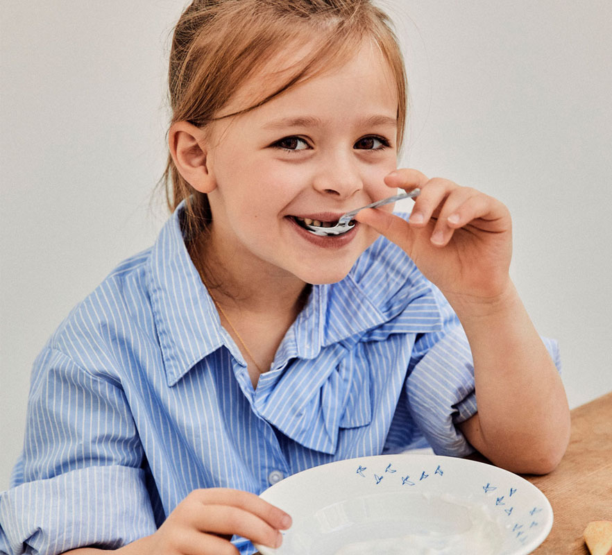 Dette gavesettet består av en samleeske med oppbevaringsplass, en porselenstallerken produsert hos Figgjo, en sølvskje og en bestikkpose for oppbevaring av 6 deler bestikk.